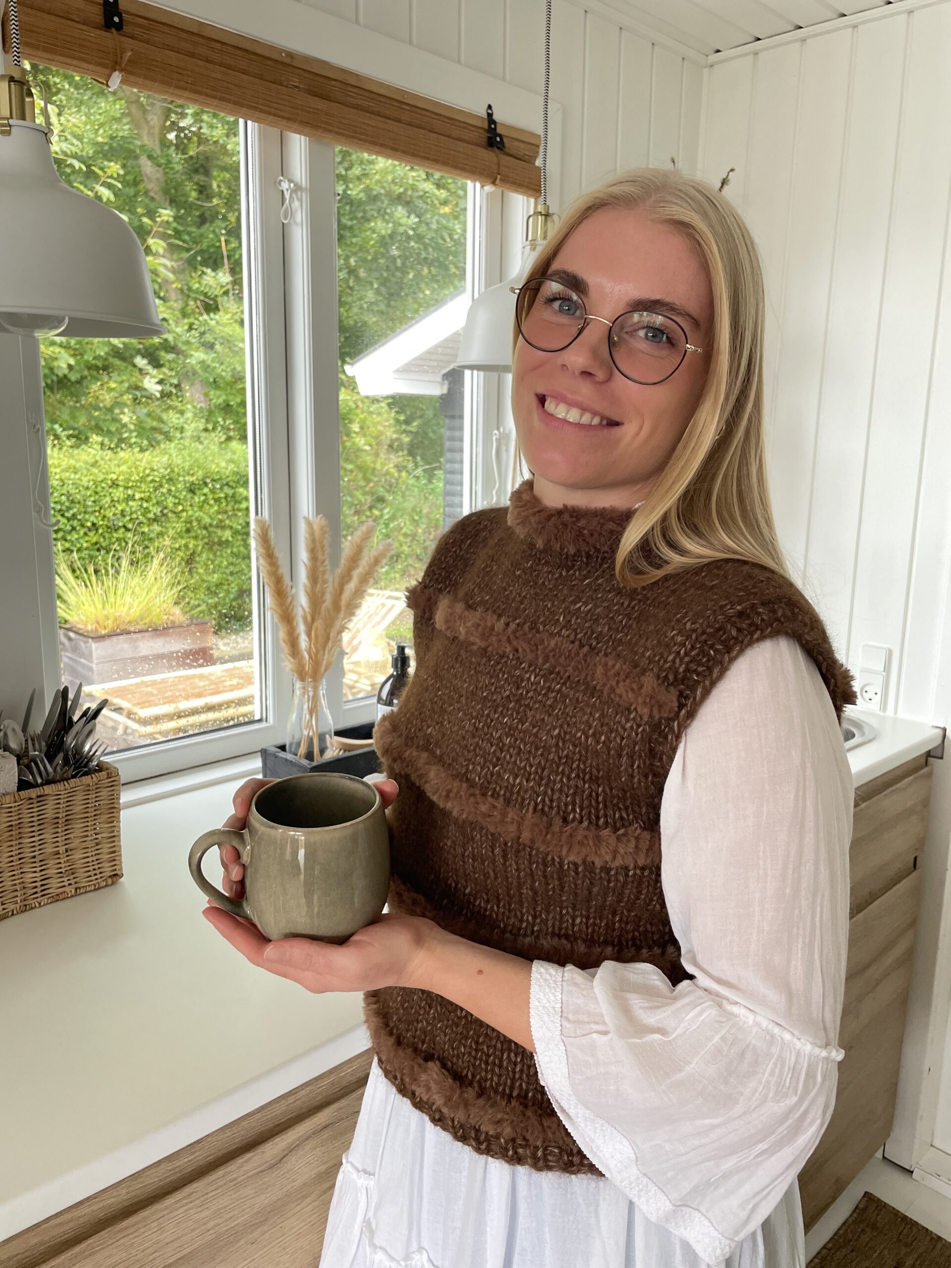 Garn: Camarose Snefnug Natur (55 % alpaka, 35 % økologisk bomuld & 10 % merinould, 50 g = 110 m) 250 g (300 g) 400 g &