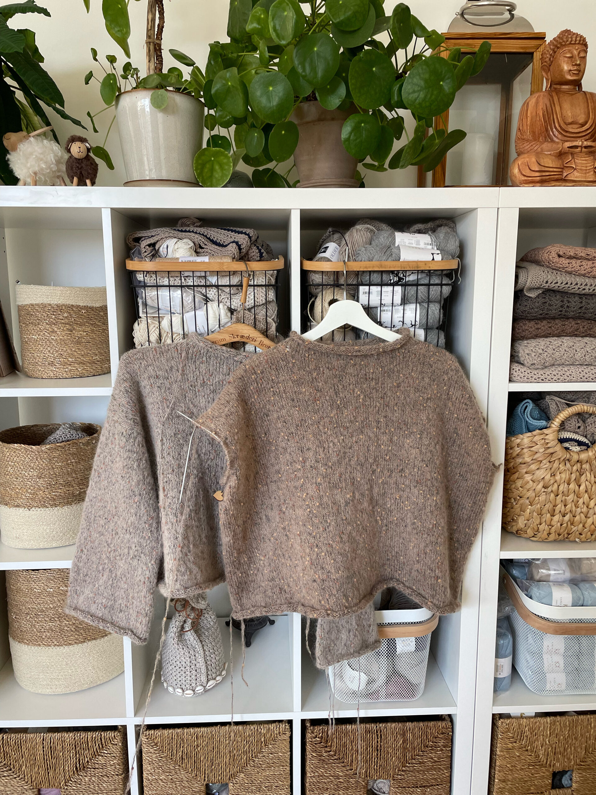 Garn: Multi Popkorn, Dale Garn fra House of Yarn (12 % mohair, 24 % wool, 24 % acrylic, 9 % nylon, 31 % polyester, 50 g = ca 135 m) 300 g (400 g) 400 g